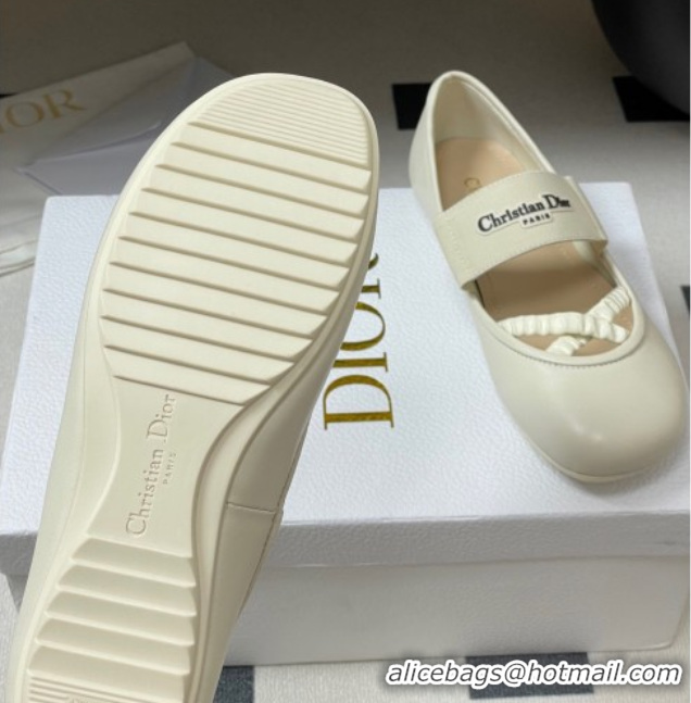 Classic Hot Dior Shade Ballet Flats in Lambskin with Elastic Straps White 0822008