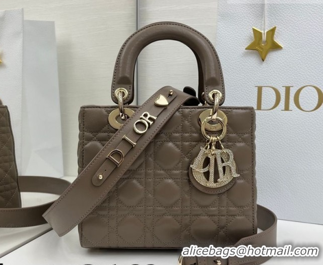 Best Product Dior Small Lady Dior My ABCDior Bag in Cannage Lambskin Leather with Strass Charm Dark Grey 0126058 2026