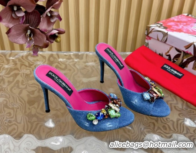 Best Product Dolce & Gabbana Blue Denim Heel Slides Sandal 10cm with Strass Stones DG121102 1211076 2026