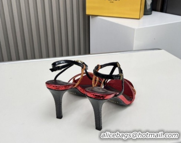 Best Product Fendi FFold Heel Sandals 8.5cm in Printed Leather FE030203 Metallic Red 2026