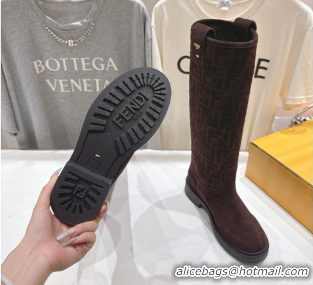 Best Product Fendi Filo Flat High Boots in FF Suede Dark Brown 2025 FE103004 1030019