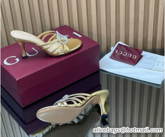 Good Looking Gucci Leather Heel Slides Sandal 8.5cm with Strass Interlocking G 852663 Gold 2026
