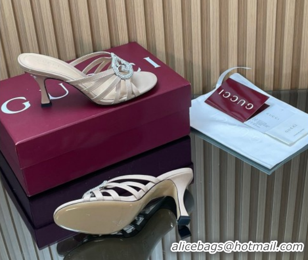 Best Product Gucci Patent Leather Heel Slides Sandal 8.5cm with Strass Interlocking G 852663 Nude 2026