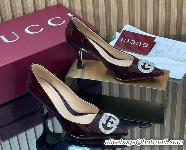 Durable Gucci Patent Leather Pumps 8.5cm with Strass Interlocking G 852995 Brown 2026