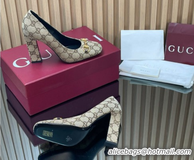 Shop Duplicate Gucci GG Canvas Pumps 10cm with Horsebit GG121801 Beige 2026