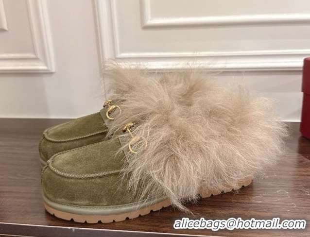 Unique Style Gucci Suede and Wool Flat Loafers with Horsebit Green GG102001