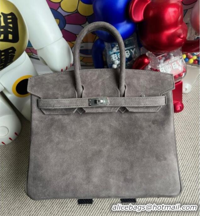 Best Product Hermes Birkin 30 Bag in Suede Leather H30 Grey/Silver 2025 (Half Handmade)