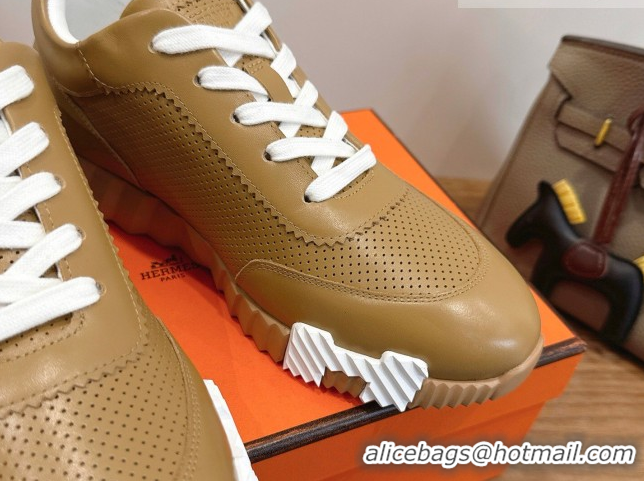Grade Hermes Bouncing Sneakers in Perforated Calfskin Leather Apricot 2026 H261013