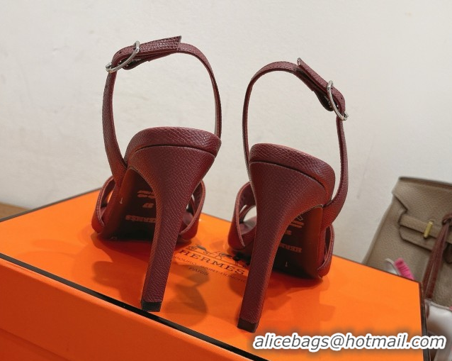 Best Product Hermes Eremite Heel Sandals 10cm in Grained Leather Dark Burgundy H02275 1023163