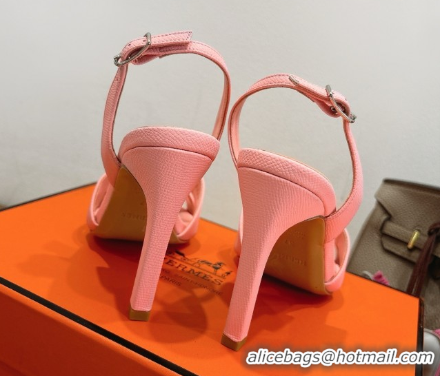 Good Quality Hermes Eremite Heel Sandals 10cm in Grained Leather Light Pink H02275 1023164