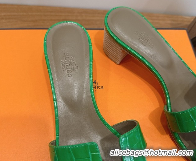 Purchase Hermes Oasis Classic Heel Slides Sandal 4.5cm in Crocodile Embossed Leather Green 0304043