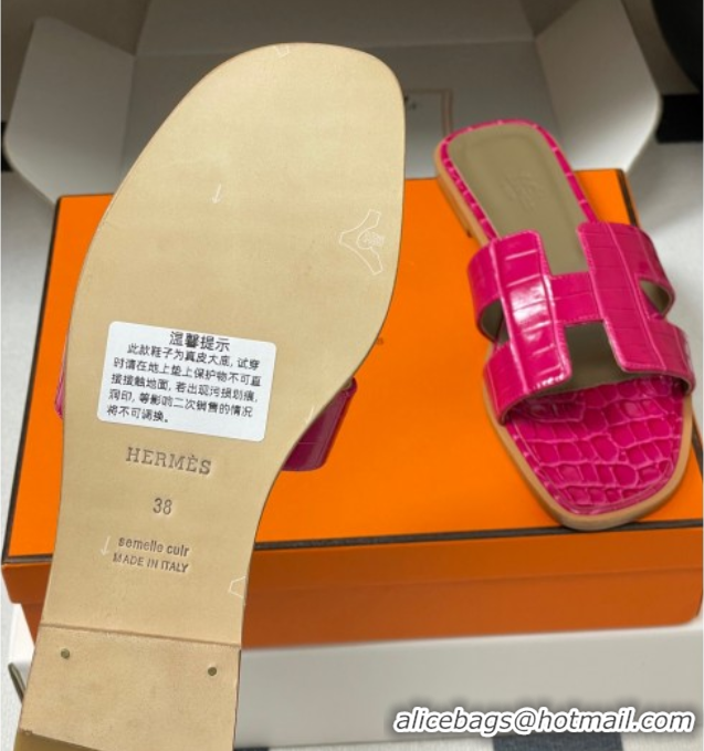 Best Product Hermes Oran Classic Flat Slides Sandal in Crocodile Embossed Calfskin Hot Pink 2025 H081803