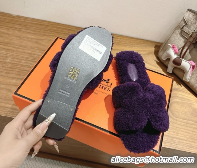 Shop Duplicate Hermes Oran Sandals in Shearling Wool H101605 Purple