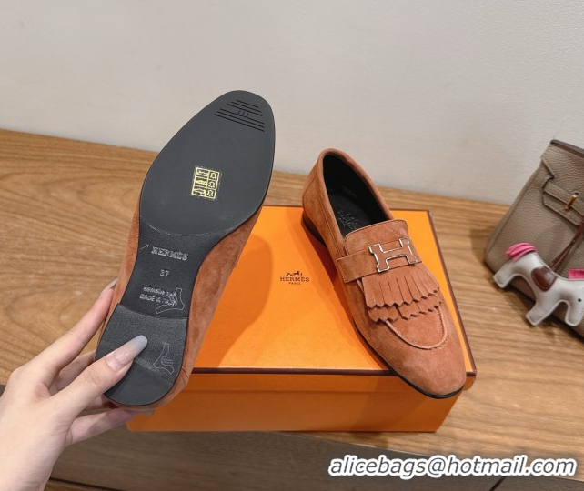 Best Product Hermes Royal Loafers in Suede with Fringe Brown 2025 H082006 0820046