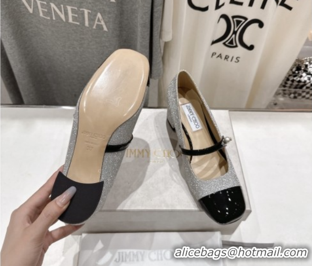 Best Product Jimmy Choo Elisa 45 Pumps in Patent Leather & Glitter Silver/Black 5111738