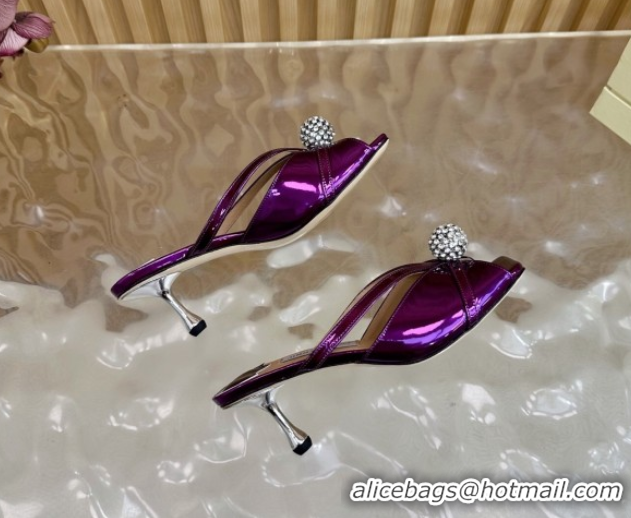 Best Product Jimmy Choo Siva Heel Slides Sandal 6.5cm in Glazed Leather with Strass Purple 2025 JC103102