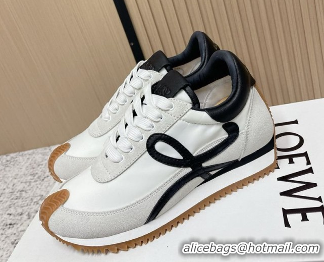 Classic Hot Loewe Flow Runner Sneakers in Suede and Nylon White/Black 0506061