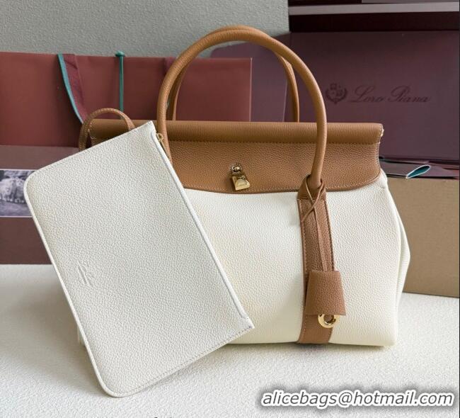 Best Product Loro Piana Loom Top Handle bag L32 in Grained Calfskin Leather 0925 White/Brown 2025