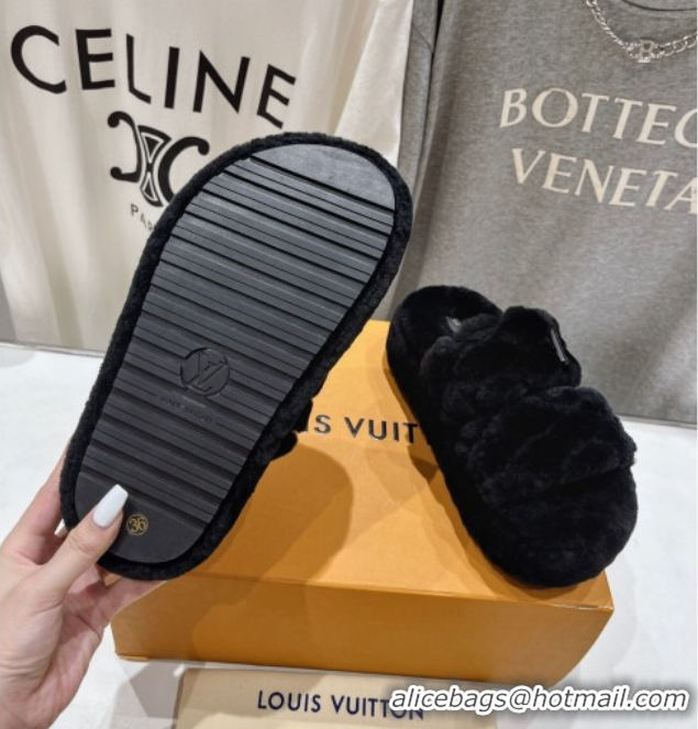 Durable Louis Vuitton LV Bliss Comfort Shearling Platform Slides Sandal Black LV082906 0829115