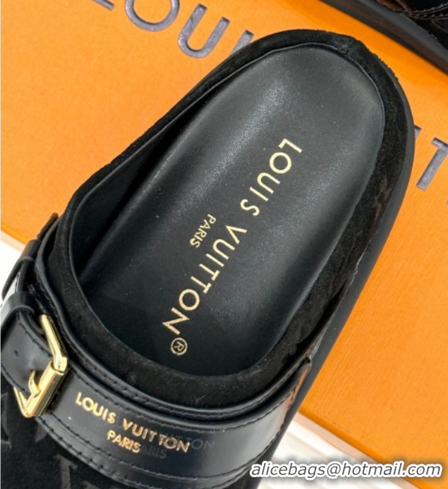 Purchase Louis Vuitton LV To-Go Flat Comfort Clog Mules in Suede with Buckle Black 1AHLVU 0829084