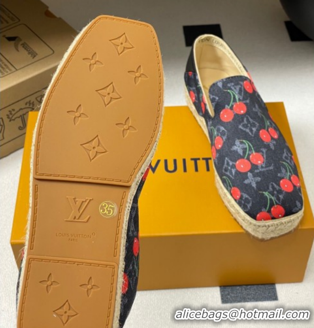 Shop Duplicate Louis Vuitton LV x TM Cerise Cherry Printed Denim Flat Espadrilles Black LV102205 1022043