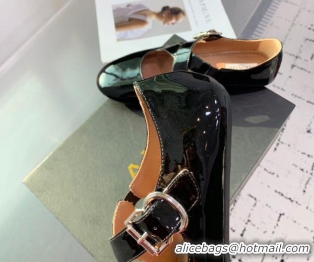Hot Style Alaia Sphere Ballet Flats in Patent Leather with Double Strap Black AL100808 1008046