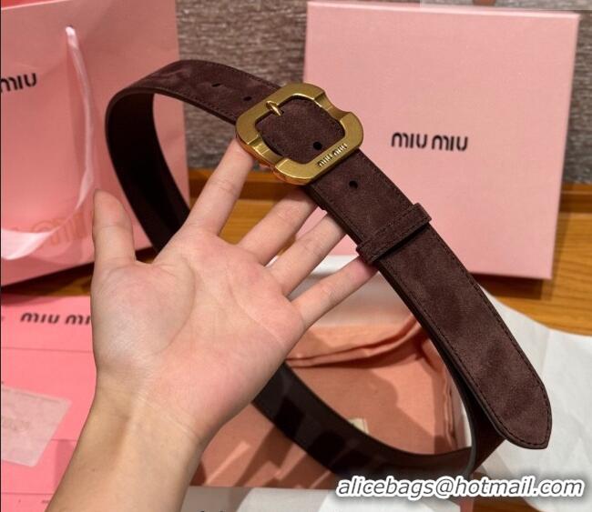 Best Product Miu Miu Belt 3.5cm in Suede and Calfskin Leather MM26010401 Dark Brown/Gold 2025