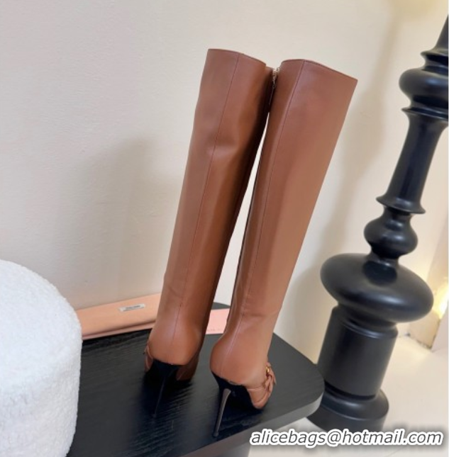 > Shoes Plaza > Miu Miu Shoes > Best Product Miu Miu Leather High Heel Boots with Strap Buckle Brown MIU082603 0826018