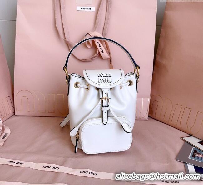 Best Product Miu Miu Leather Mini Backpack Bag 5BZ045 White 2025