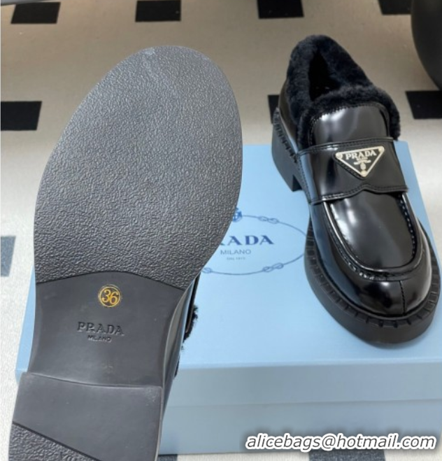 > Shoes Plaza > Prada Shoes > Sumptuous Prada Brushed Leather and Wool Loafers Black 2025 1D246M 1027047