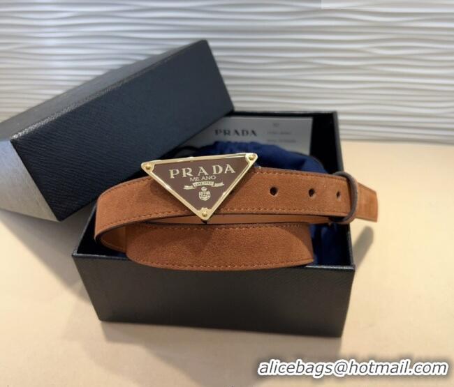 Good Product Prada Suede Belt 2cm with Triangle Logo Buckle PR011001 Brown/Gold 2025