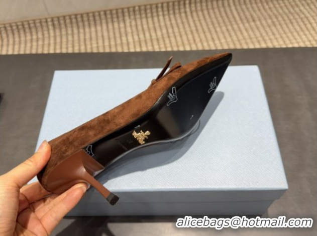 Best Product Prada Suede Heel Pumps 7.5cm with Bow Brown PR120603 1206015 2026