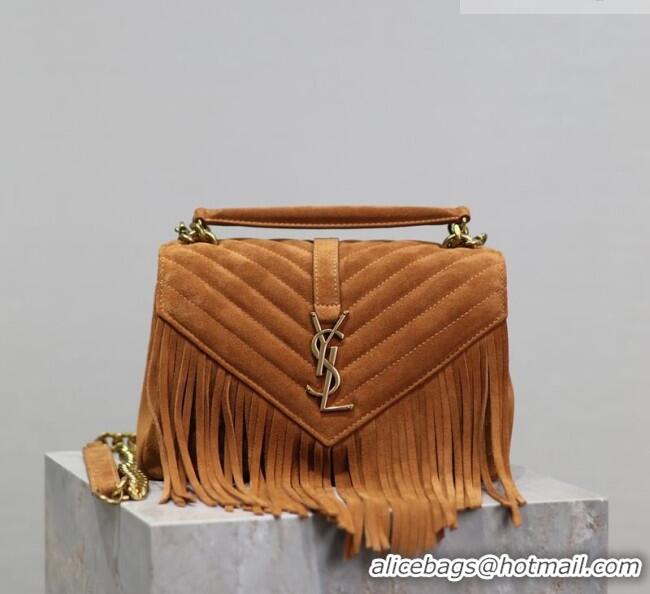 Top Quality Saint Laurent Medium Monogram College Bag in Suede with Tassel 392737 Clay Brown 2026
