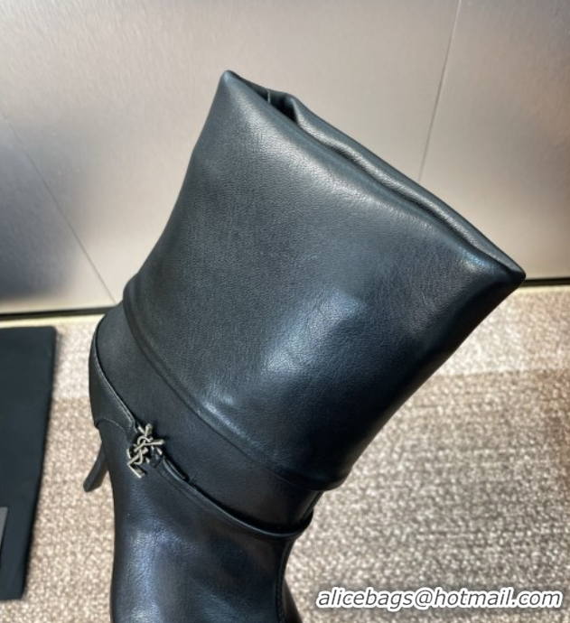 Your Position: Home > Shoes Plaza > Yves Saint Laurent Shoes > Best Product Saint Laurent Niki Heel Ankle Boots 9.5cm with YSL Strap in Calfskin Black 0825079
