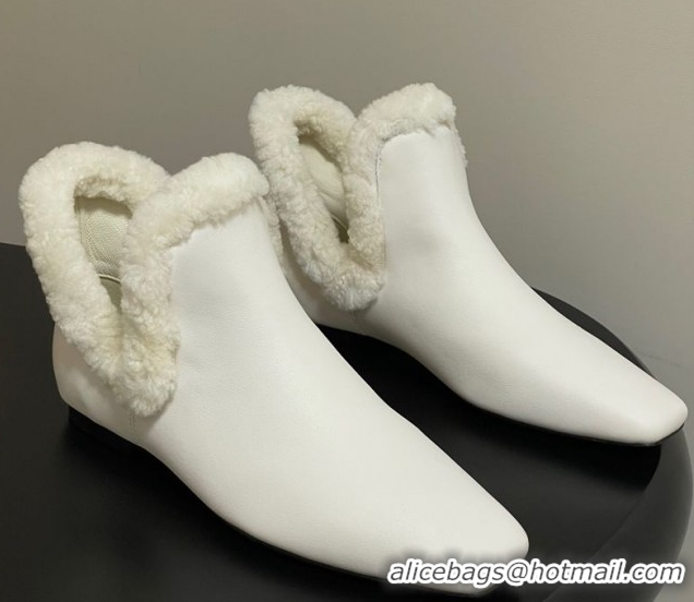 Best Product The Row Lambskin and Wool Flat Ankle Boots TR102801 White 2025