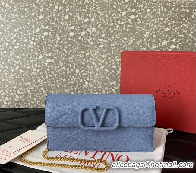 Trendy Design Valentino VLogo Grainy Calfskin Chain Clutch VLTN061 Light Blue 2024