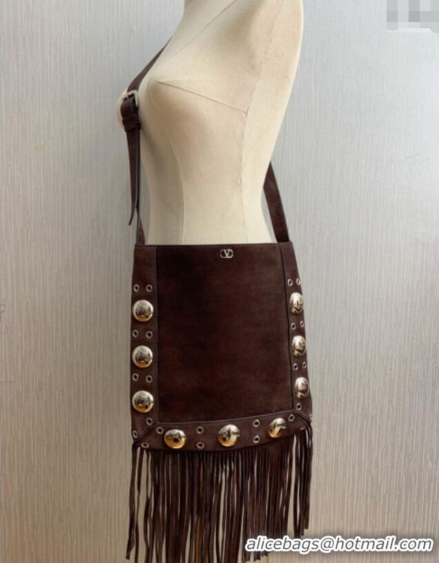 Modern Classic Valentino Nellcote Shoulder Bag in Suede with Fringes Tassel and Ball Studs 2033 Brown 2025