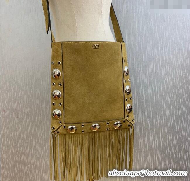 Best Product Valentino Nellcote Shoulder Bag in Suede with Fringes Tassel and Ball Studs 2033 Khaki 2025