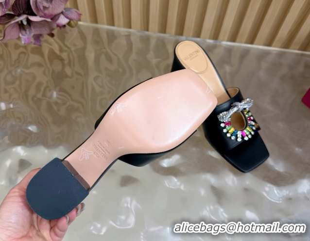 Best Product Valentino Strass Embellished Heel Slides Sandal 6cm in Calfskin Leather Black/Multicolor VLTN121509 51215122