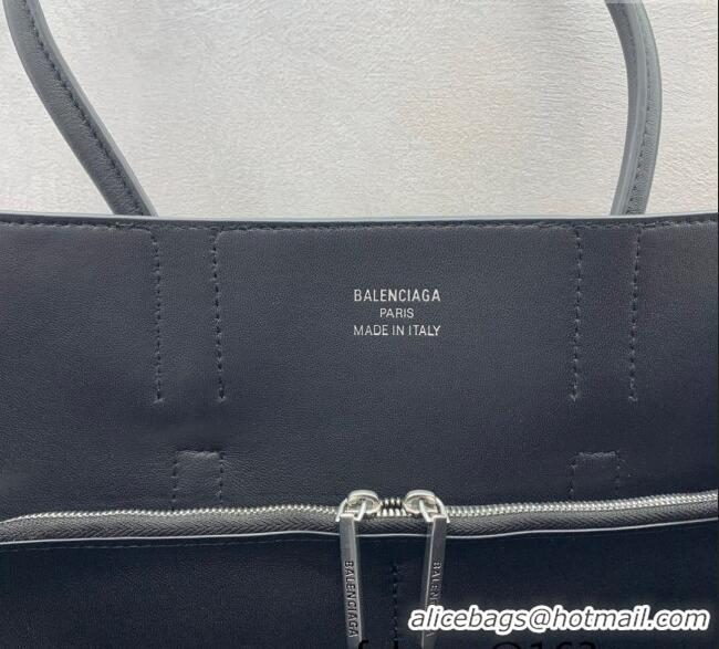 Best Quality Balenciaga Bel Air Medium Carry All Bag in smooth calfskin 48090 Black aged-silver hardware 2025