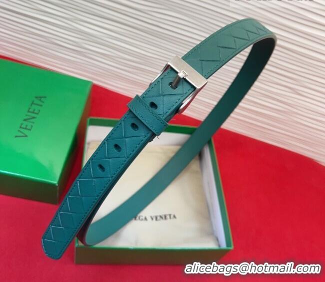 Best Quality Bottega Veneta Intrecciato Leather Belt 2cm with Pin Buckle BV26010404 Green/Silver 2025