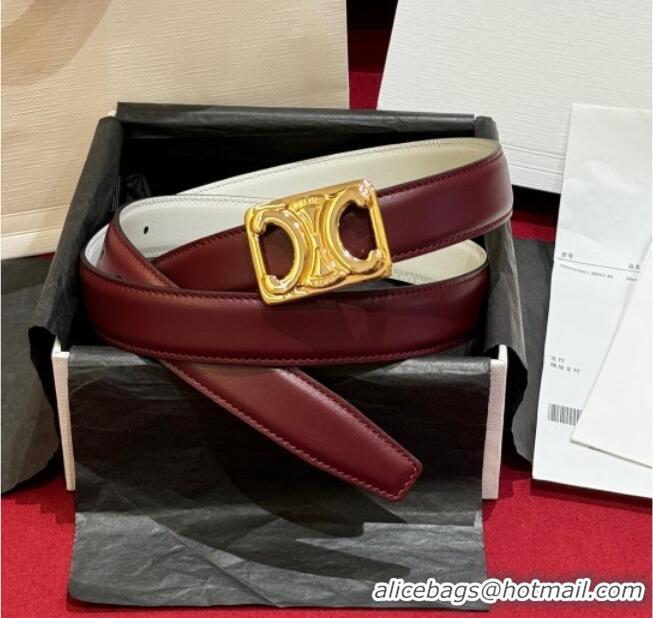 Modern Classic Celine Medium Taurillon Leather Belt 2.5cm with Framed Triomphe Buckle CE011005 Burgundy/White/Gold 2025