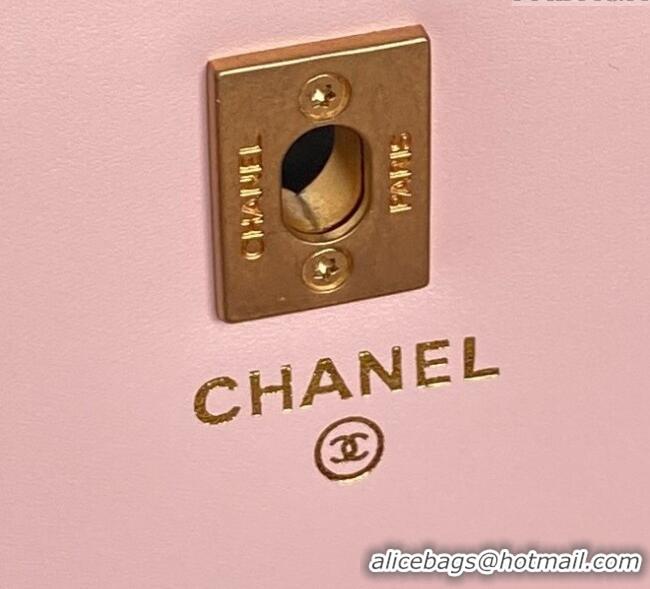 Best Quality Chanel Grained Shiny Calfskin Clutch with chain and Top Handle AP4798 Light Pink 2025