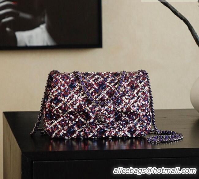 Best Quality Chanel Sequins Classic Small Flap Handbag A01113 Purple 2026