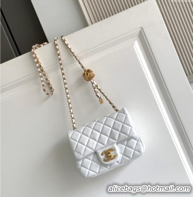 Best Quality Chanel Shiny Lambskin Square Mini Flap Bag with CC Chain AS5758 White 2025