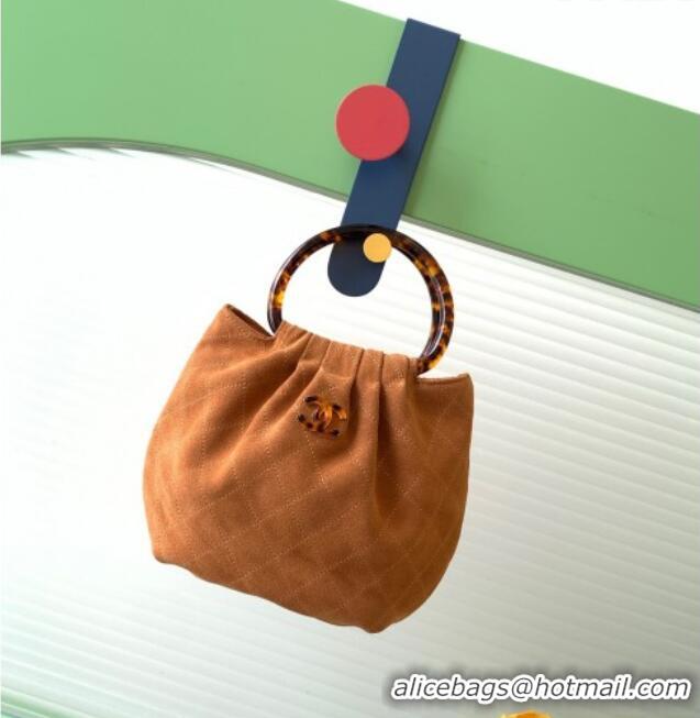 Top Grade Chanel Suede & Turtoise-Shell Effect Top Handle Small Hobo Bag AS6022 Brown 2026