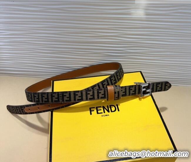 Shop Discount Fendi FF Canvas and Calfskin Belt 2cm FE102201 Brown/Silver 2024