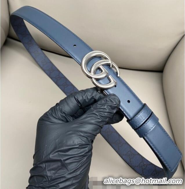 Best Quality Gucci GG Canvas and Leather Reversible Belt 3cm with GG Buckle GG011001 Blue 2025