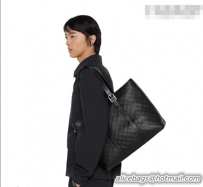 Best Quality Gucci Mens GG Leather Emblem large tote bag 850218 Black 2026