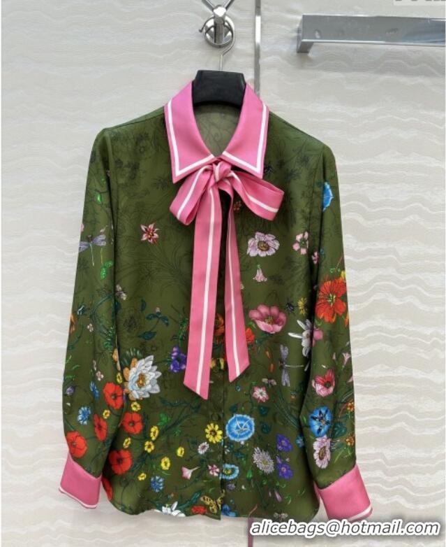 Best Quality Gucci Printed Silk Shirt G090107 Pink/Green 2025